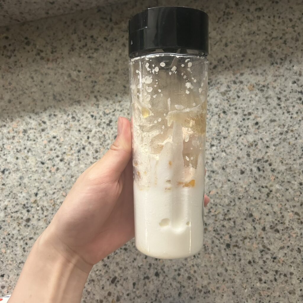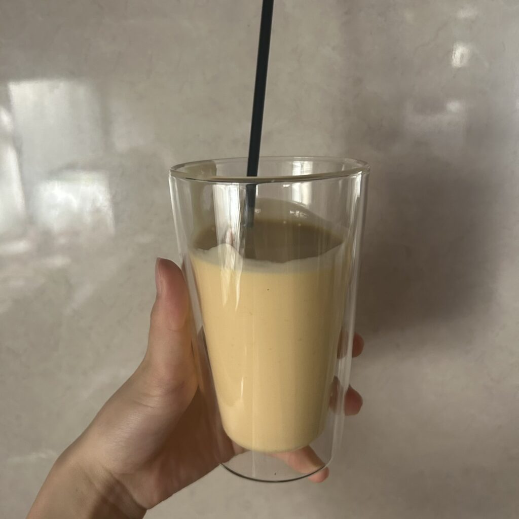 冷凍マンゴー入りなので、ひんやり冷たい!そのまま飲むよりも、よりプロテイン感がなくなります。